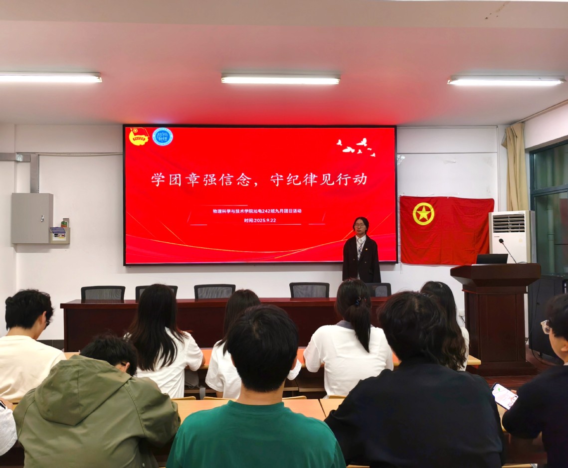 为深入学习贯彻党的二十大精神,落实团中央全面从严治团要求,引导青年学子筑牢信仰之基、严守纪律之规,9月22日,物科院团委主办、光电242团支部承办了“学团章强信念,守纪律见行动”主题团日活动。