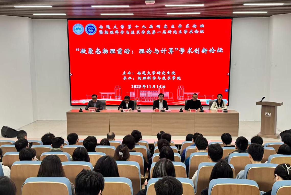 11月14日,南通大学第十九届研究生学术论坛暨物科院第一届研究生学术论坛举办。本次论坛由研究生院主办,物科院承办。校党委常委、副校长施佺出席开幕式并致辞。学院院长仲崇贵,学院党总支副书记、副院长陈丽分别主持论坛开幕式、闭幕式。
