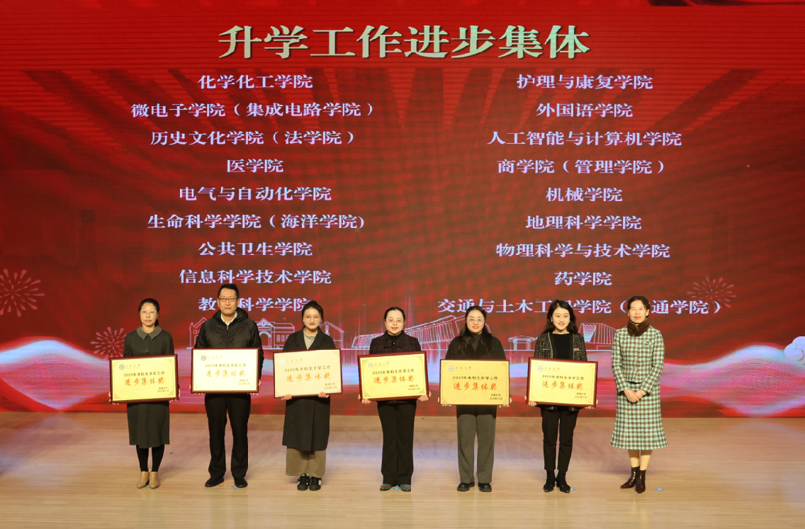 南通大学2025年升学工作共有5个学院获评“升学工作先进集体”荣誉称号,18个学院获评“升学工作进步集体”荣誉称号,12个学院获评“升学工作单项先进集体”荣誉称号,21名辅导员被表彰为“升学工作先进个人”。