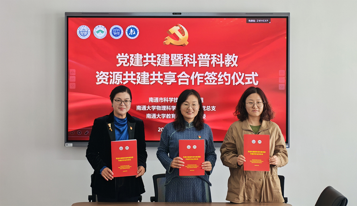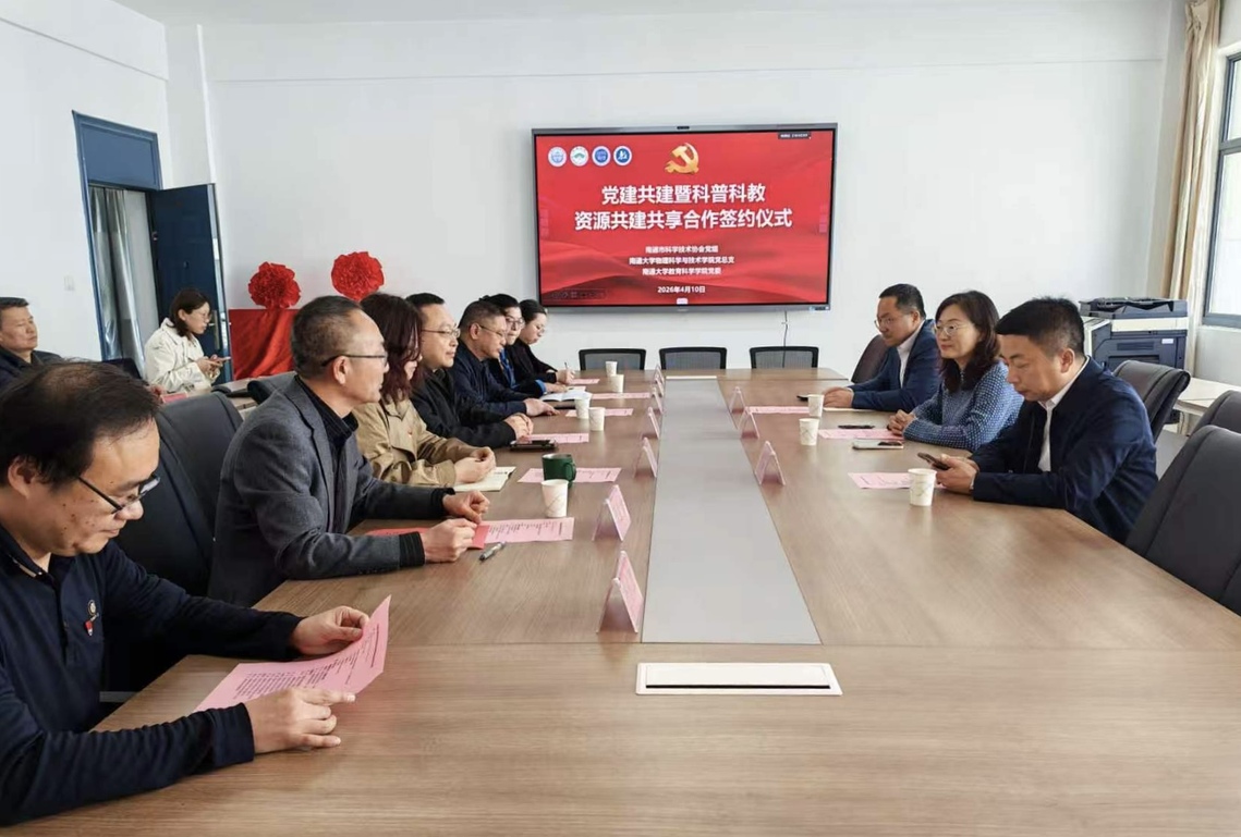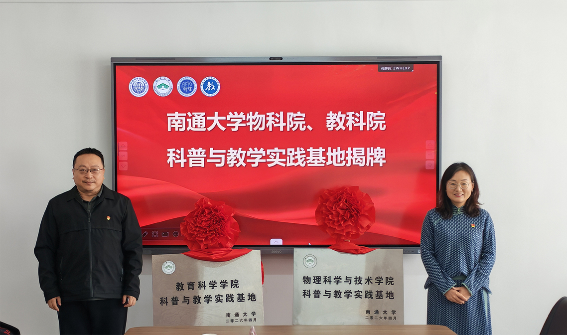 4月10日,南通大学物科院、教科院与南通市科协开展“党建共建暨科普科教资源共建共享合作”签约仪式。党委常委、副校长华亮,南通市科协党组书记、主席成媛媛共同为南通大学教科院、物科院科普与教学实践基地揭牌。